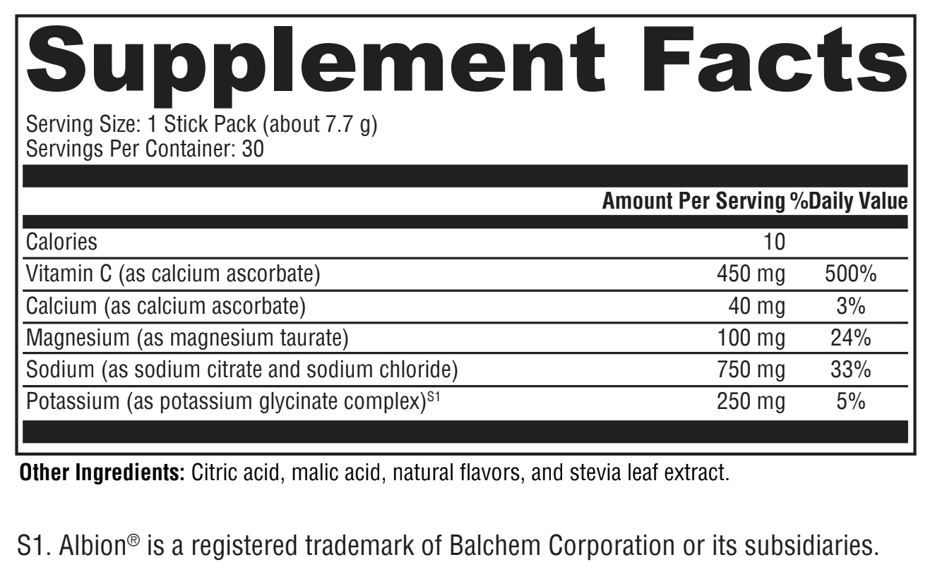 Dissolve the contents of 1 stick pack (7.7 g) into 8-16 oz of water or other beverage and consume as needed, or use as directed by your healthcare professional. Consult your healthcare professional before use. Individuals taking medication should discuss potential interactions with their healthcare professional. Do not use if stick pack is damaged.