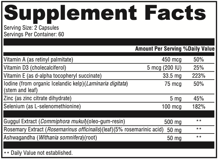 • Botanical support – Features ashwagandha and guggul extracts to aid thyroid function and healthy lipid metabolism